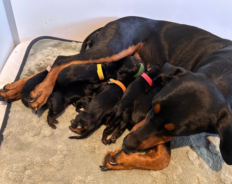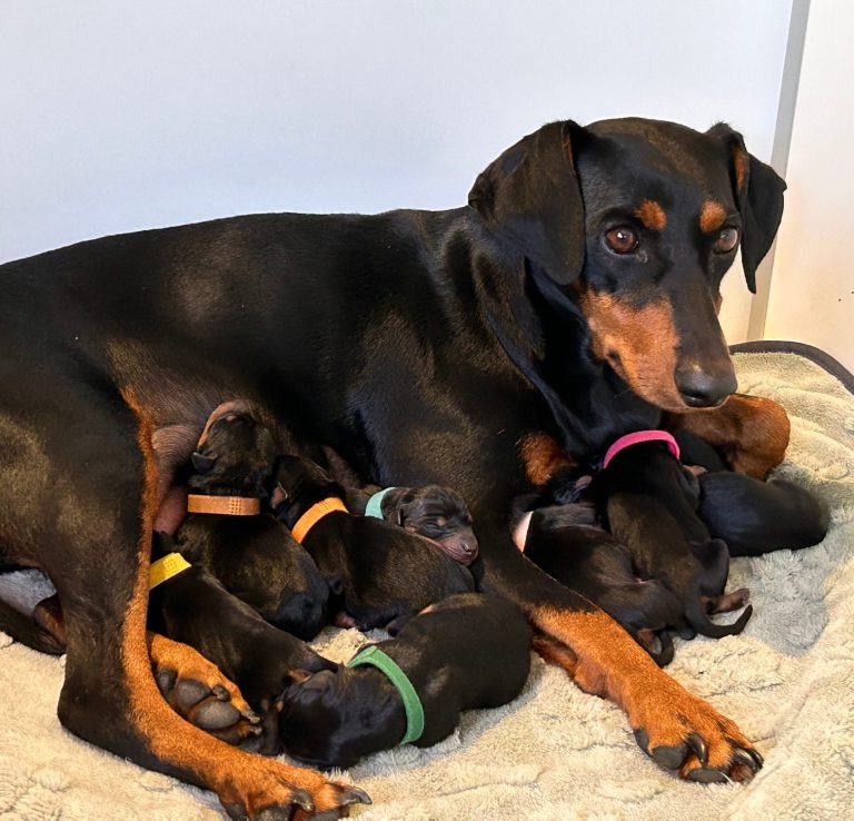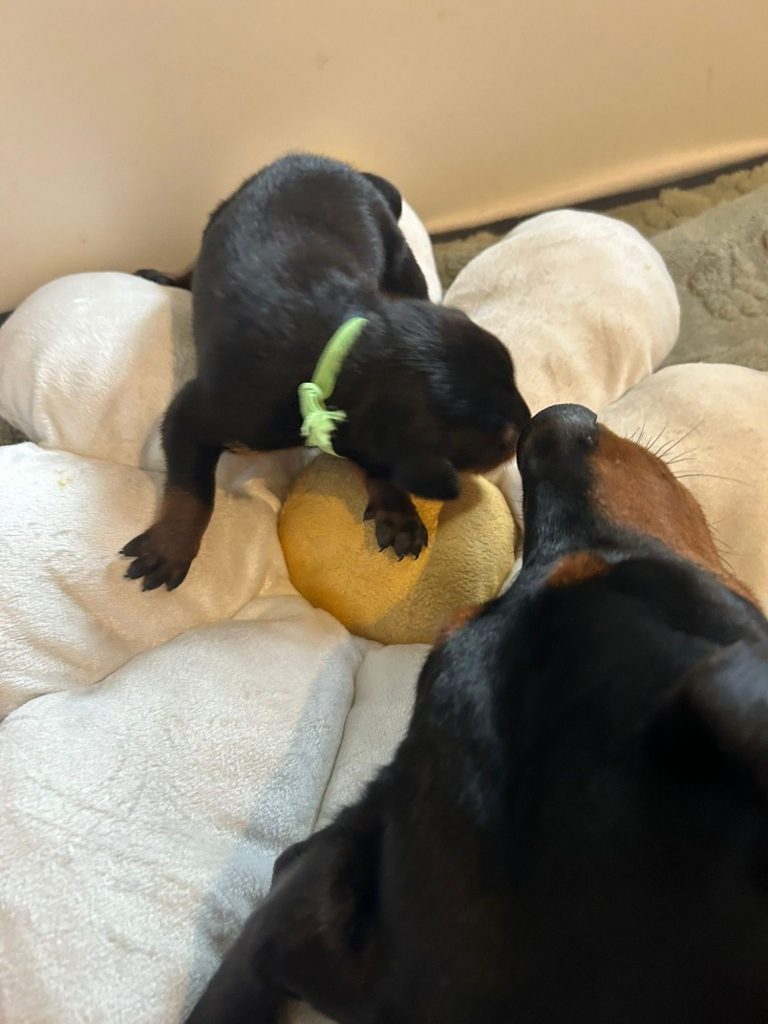 Unsere Deutsche Pinscher Hündin Olea vom Tiefental wurde am vergangenen Wochenende erfolgreich von Baron-Bendix vom Weitmoos belegt. Wenn alles wie erhofft klappt, dürfen wir uns im April auf niedliche Welpen freuen. 🐾💛